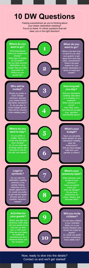 10 Destination Wedding Questions to ask yourself… Share this: Click to share on Facebook (Opens in new window) Facebook Click to share on Pinterest (Opens in new window) Pinterest Click to email a link to a friend (Opens in new window) Email Click to print (Opens in new window) Print Click to share on LinkedIn (Opens in new window) LinkedIn Like Loading...