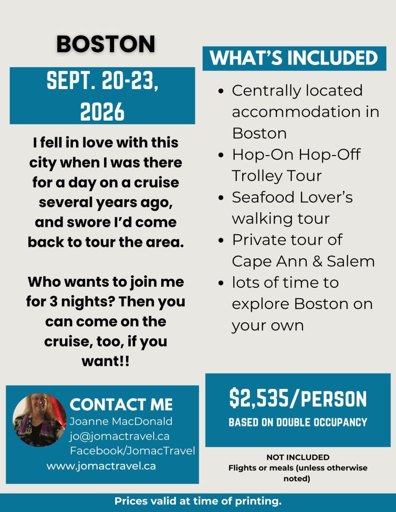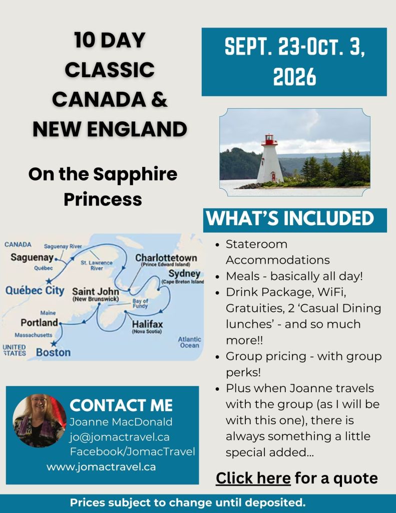 10 day Canada & New England Cruise. What a wonderful time of year to see the east coast! And we have some wonderful people going already! Come along and join us!