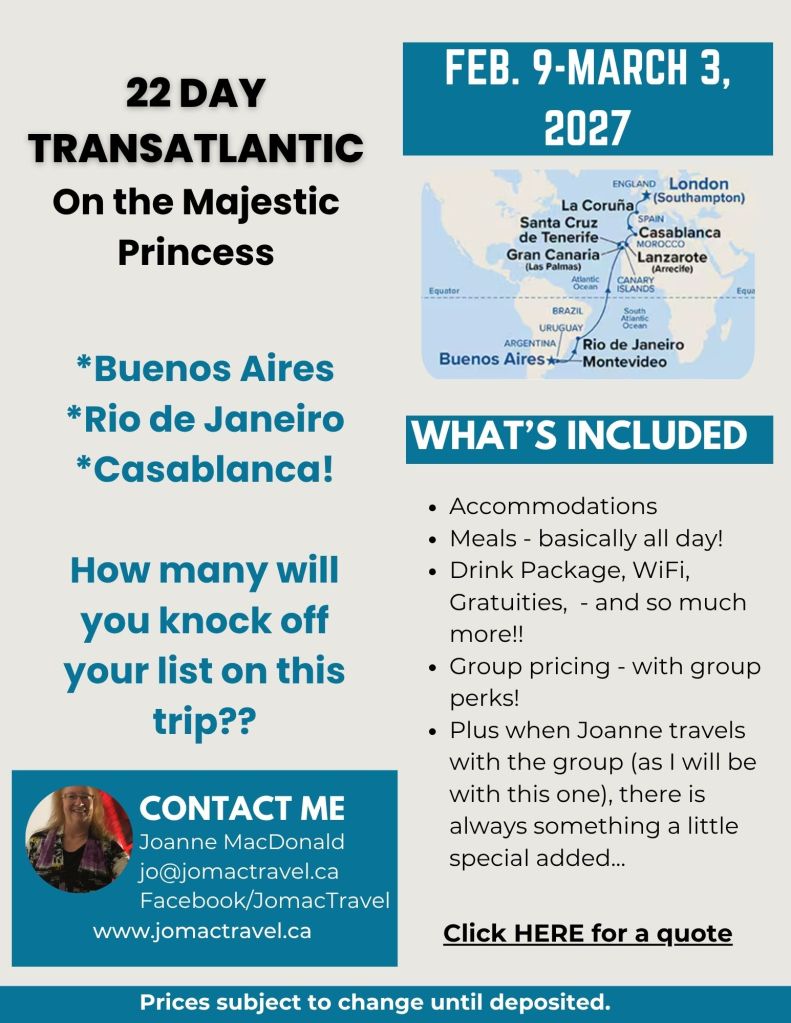 If you don’t see anything here that works for you – I can set up your own group trip on a date that suits you – wherever in the world you want!! It doesn’t have to be a large group! It can be your ‘bubble’… Multi-generational; Skip-generational; Family; Friends; Colleagues; Alumni…