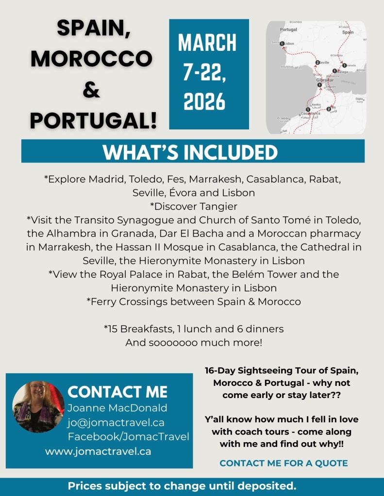 SPAIN, MOROCCO & PORTUGAL. Join me on this Trafalgar Coach Tour – what an amazing itinerary!