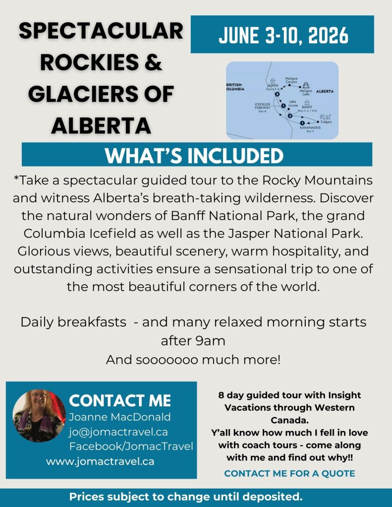 SPECTACULAR ROCKIES & GLACIERS – Are you wanting to see more of this glorious part of Canada? This will be an amazing trip with Insight Coach Tours.